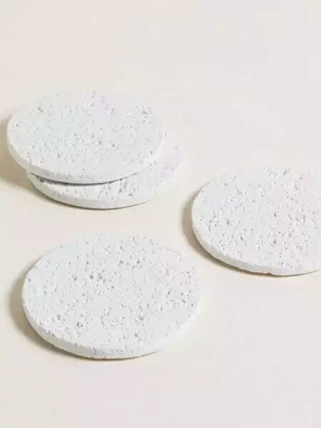 Posavasos redondos de cerámica blanca.